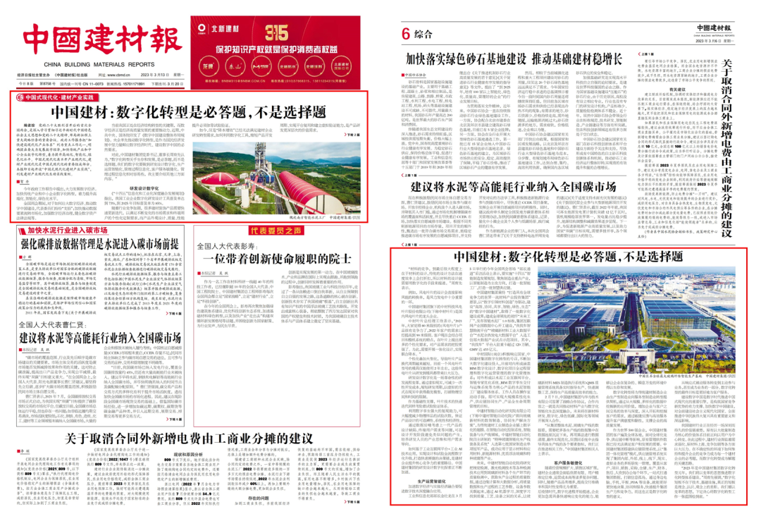 2023年全國兩會政府工作報告把“加快建設(shè)現(xiàn)代化產(chǎn)業(yè)體系”列為重點工作之一,明確提出要大力發(fā)展數(shù)字經(jīng)濟(jì),加快企業(yè)數(shù)字化轉(zhuǎn)型,著力提升高端化、智能化、綠色化水平?!吨袊ú膱蟆诽卦O(shè)“中國式現(xiàn)代化·建材產(chǎn)業(yè)實踐”專欄,刊發(fā)了中國建材集團(tuán)黨委書記、董事長周育先的專訪文章。小料將全文分享給大家。